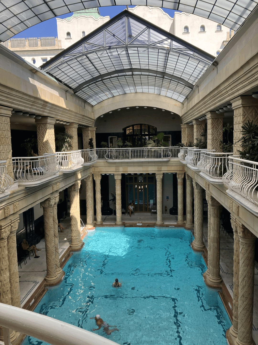 The Gellért Thermal Bath, part of the historic Hotel Gellért in Buda, Budapest, was built in Art Nouveau style between 1912 and 1918. Although it was damaged during World War II, it was later restored. Historical references to the healing waters here date back to the 13th century when a hospital occupied the site. During the Ottoman Empire, baths were established, and the “magical healing spring” became popular with the Turks in the 16th and 17th centuries.